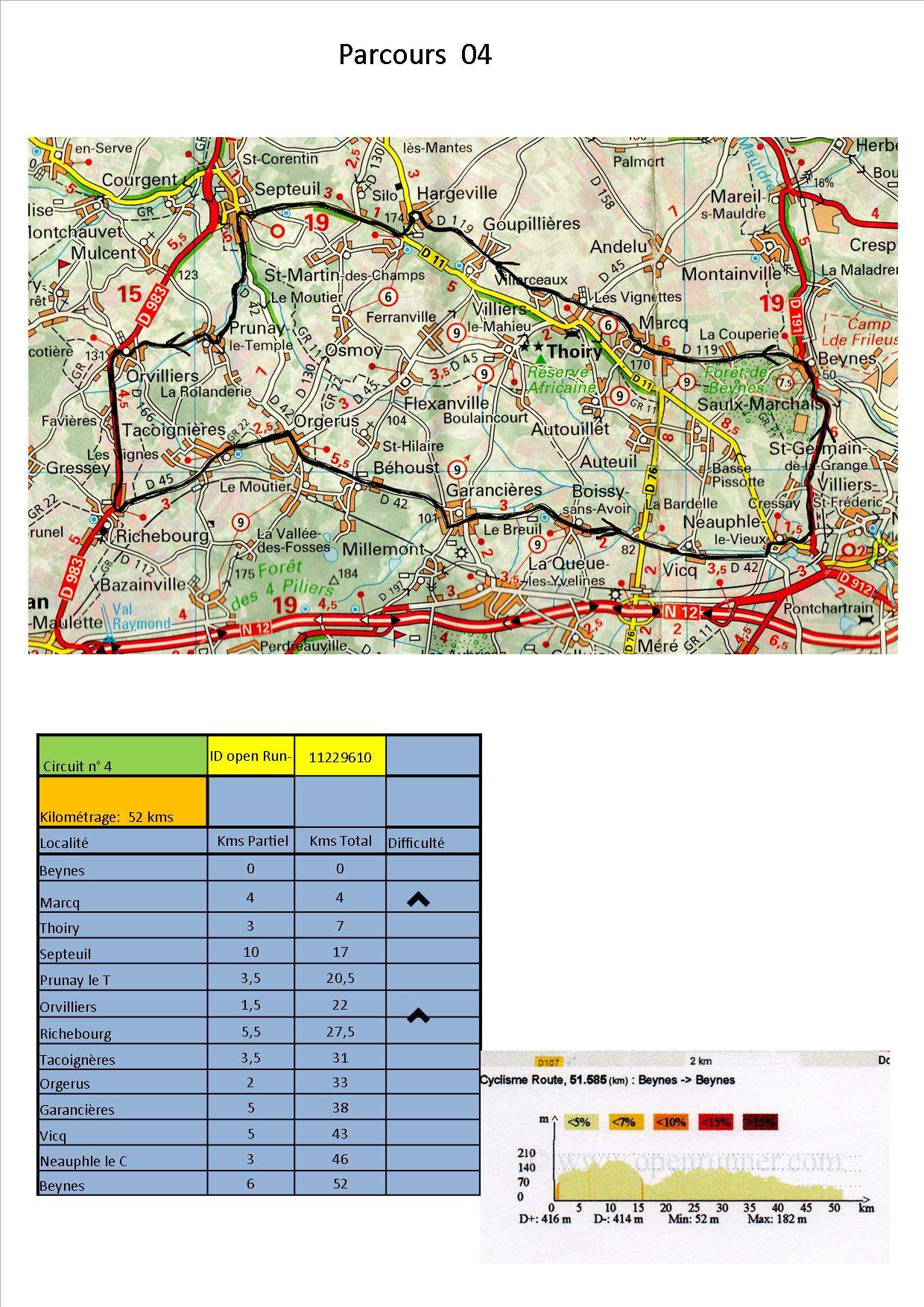Parcours numéro 05 Route : départ du local VCB à 13 h 30 58.7 Km - D+ 431 m